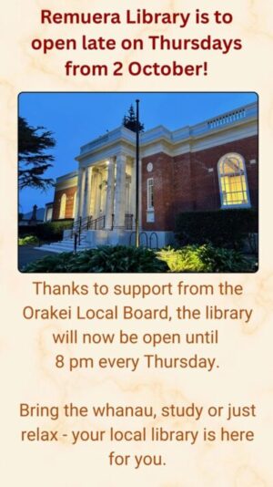 The Annual General Meeting will be held on Friday 13th June 2025 at the Remuera Library at 6.30pm. Speakers will include Troy Churton of the Orakei Local Board and Sally Hughes, Chair of the Character Coalition.