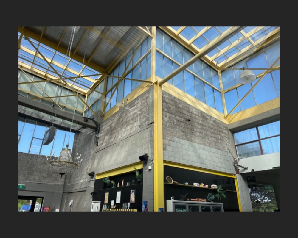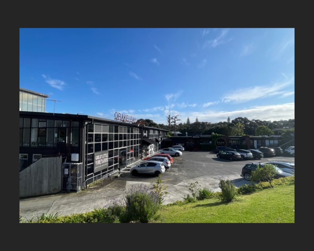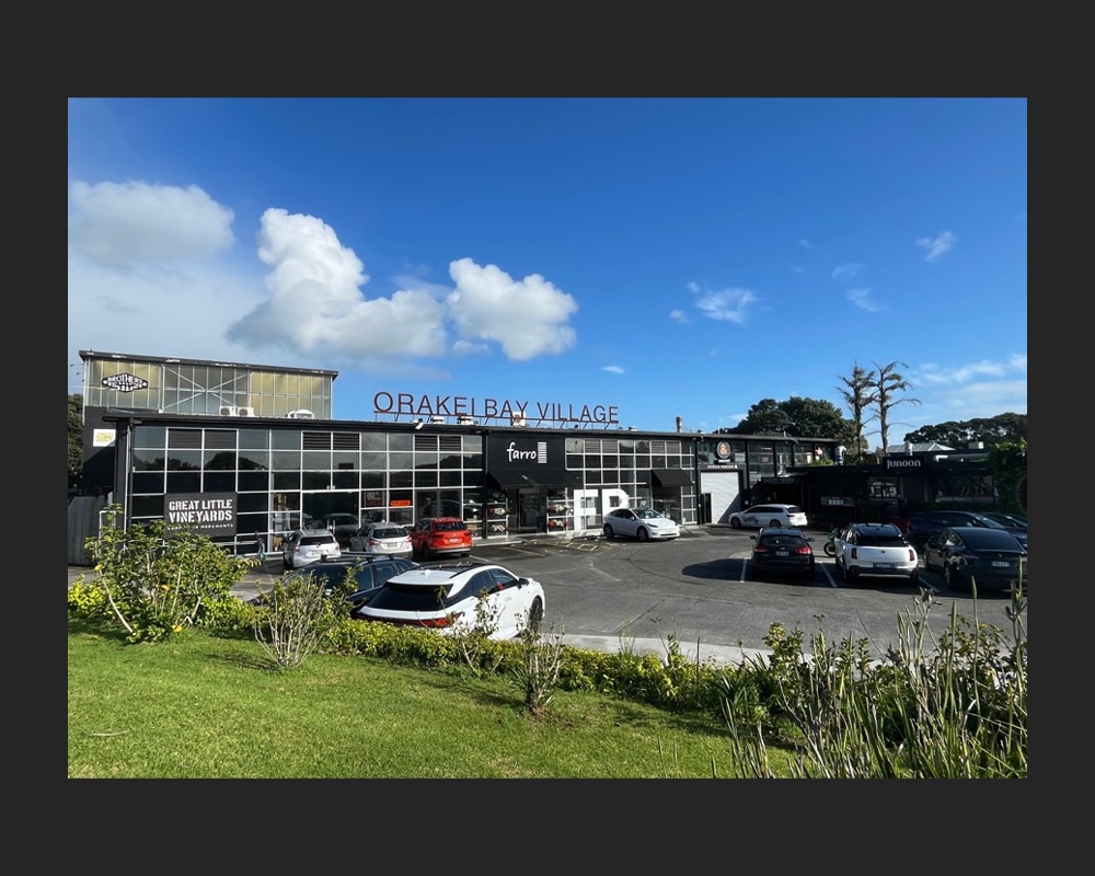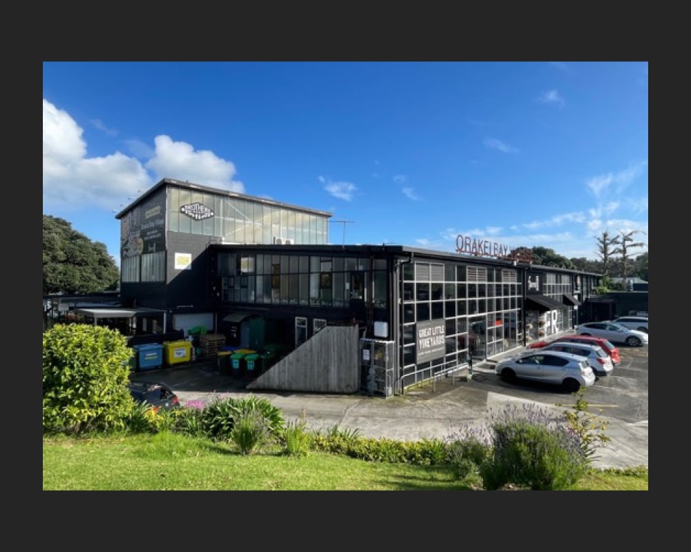 Located between the Orakei Basin and Hobson Bay, ‘Orakei Bay Village’ occupies a mid-century building with an interesting history. Purpose-built as a factory for manufacturing and distributing radios in 1954, the building subsequently had a decades-long association with New Zealand’s liquour industry. Now a popular boutique shopping precinct, the substantial concrete, steel, and glazed structure still retains evidence of its industrial past.